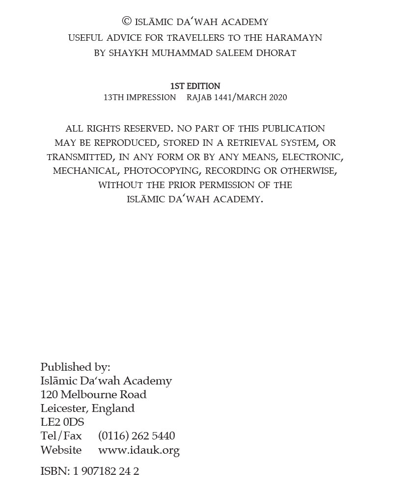 Useful Advice for Travelers to the Haramayn (By Shaykh Muhammad Saleem Dhorat)